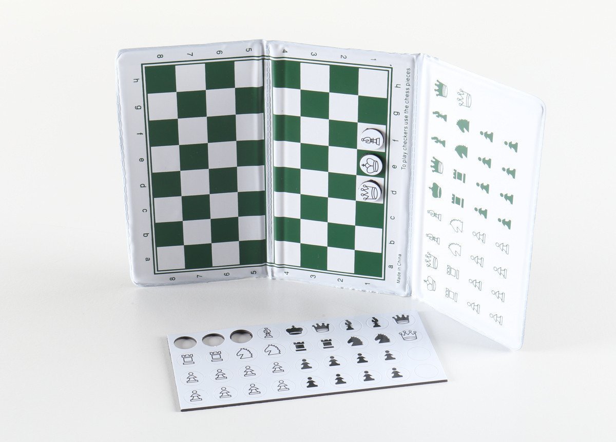 It's magnetic pieces are highly visible on the board. Double-fold design offers compact size, similar to a checkbook. Soft, padded feel is an extra bonus.